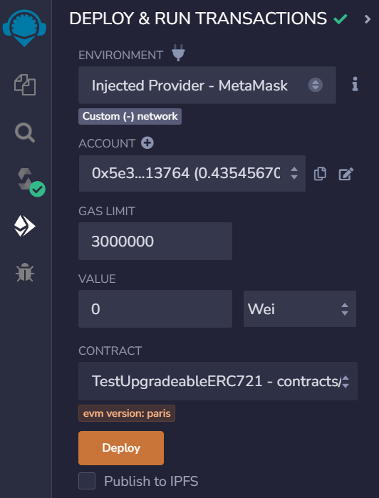Contract부분에 4_Test.sol의 클래스명을 확인하고 deploy를 누르면 된다.