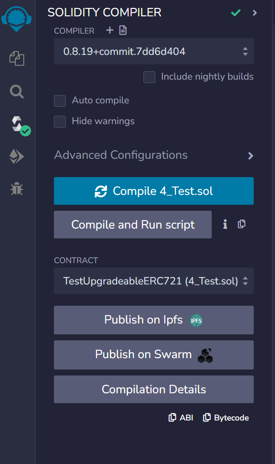 0.8.19로 설정하였다. 그 이후 Compile 버튼을 눌러 진행한다.