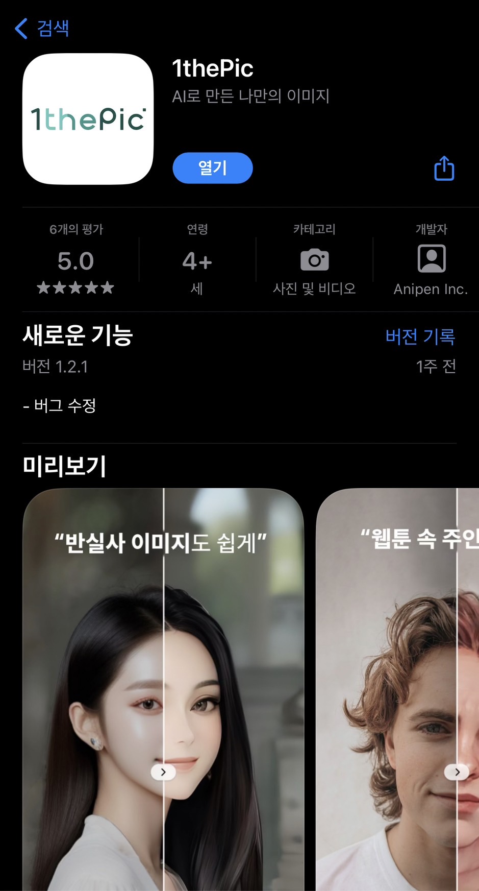 안드로이드에는 아직 출시가 안된 것 같고 IOS에서는 앱스토어에서 '1thepic'이라고 검색하면 되는데요.