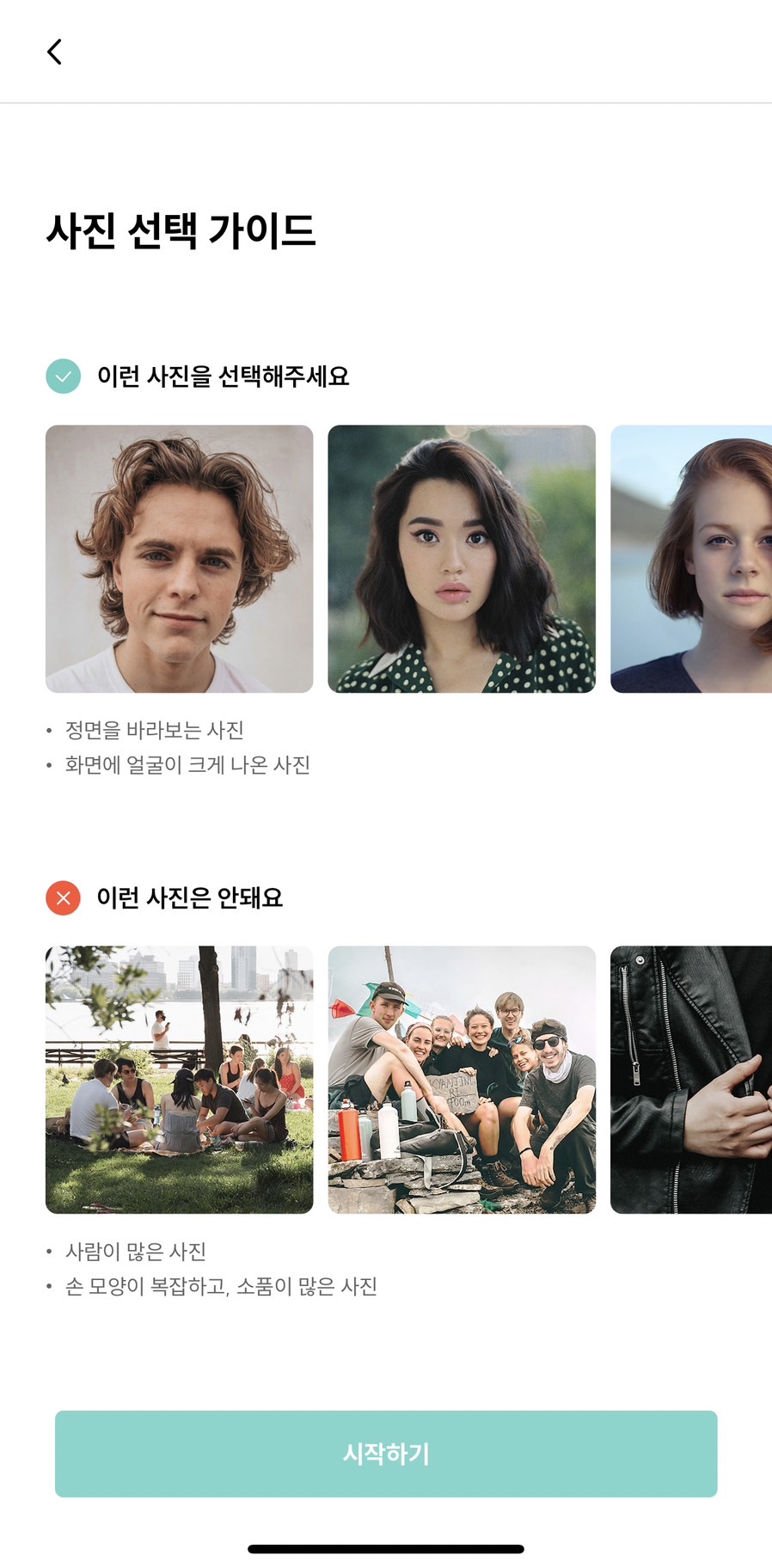 내가 변환하고 싶은 사진을 선택하기 전에 아래 가이드에 맞춰 알맞은 사진을 선택하면 될 것 같아요.
