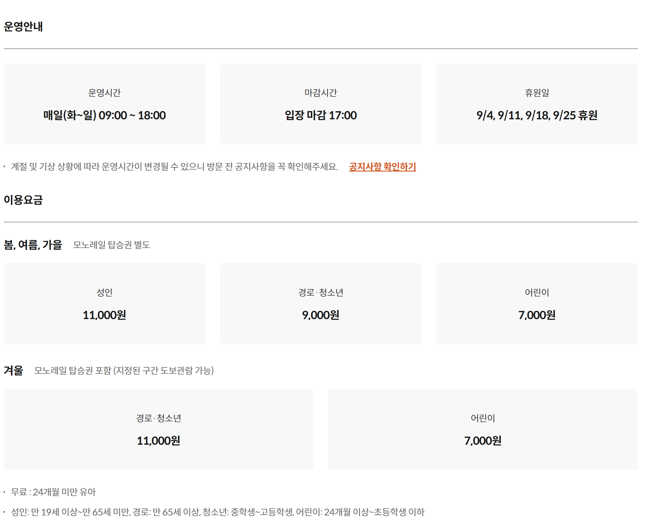 가을 단풍 시즌 (10월, 11월) 할인 안됨 - 미취학 아동 단체