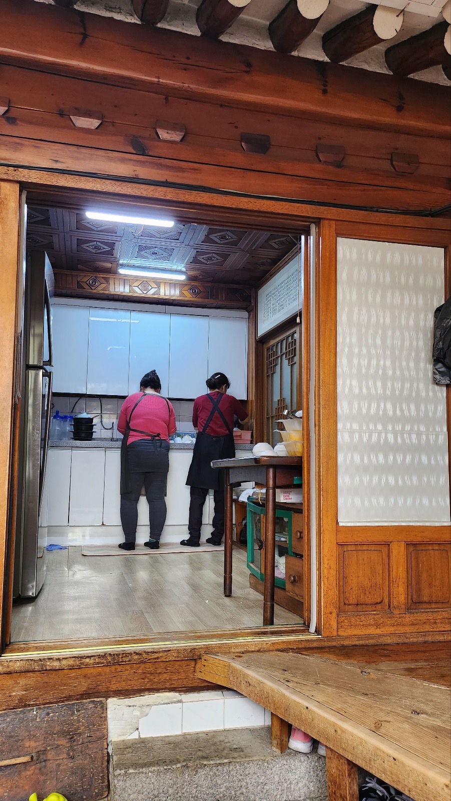 이모님들이 저렇게 집 부엌같은 곳에서 만들어 주신답니다.