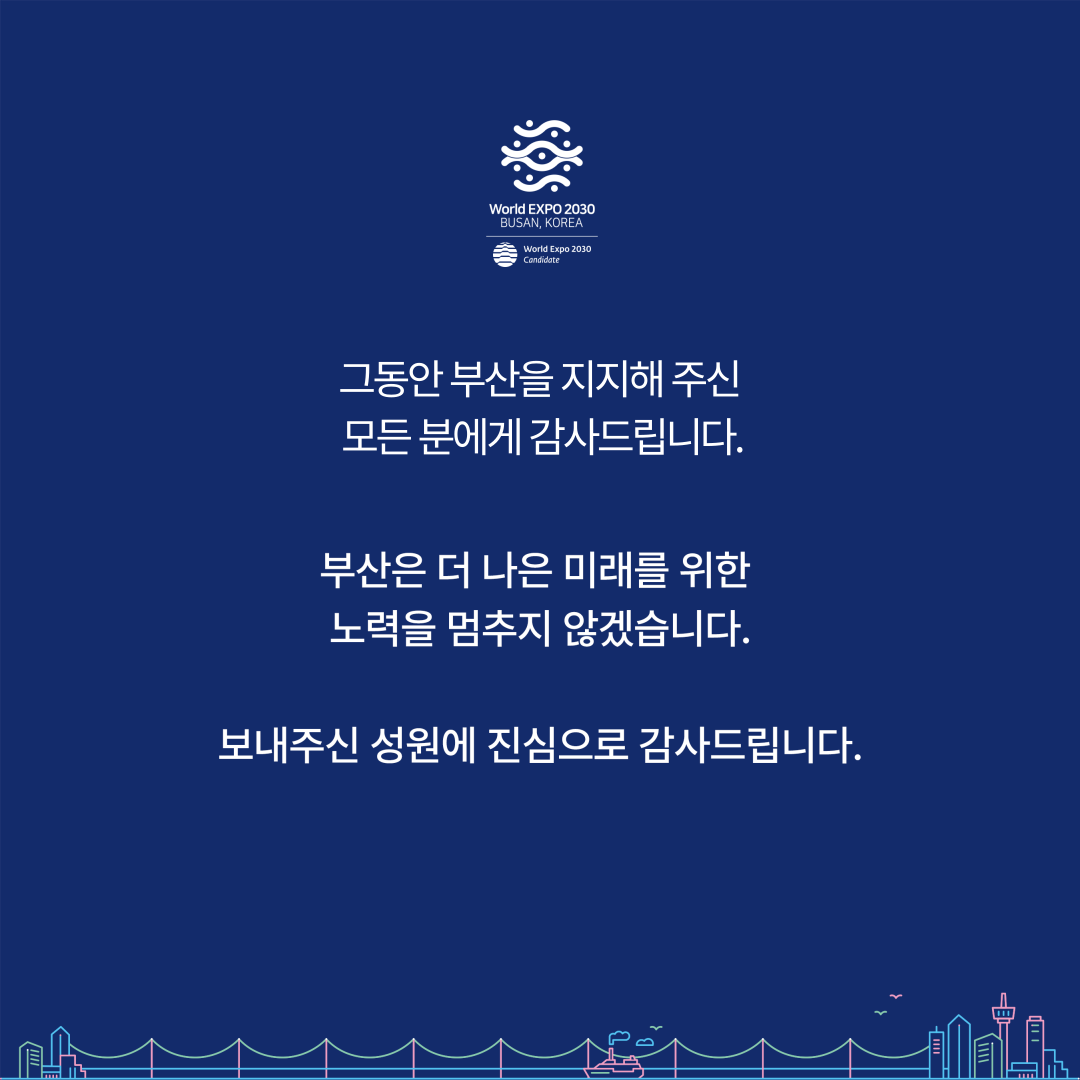 2030 부산세계박람회 유치 과정은 대한민국의 국제적 위상을 높이고, 부산을 세계적인 도시로 만들기 위한 중요한 시도였습니다. 이 경험은 부산과 대한민국에게 새로운 국제적 기회를 열어주는 교훈과 경험을 제공했습니다. 실패에도 불구하고, 부산과 대한민국은 이를 바탕으로 더 큰 꿈을 향해 나아갈 것입니다.