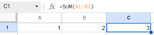 spreadsheet.getRange('C1').setFormula("=SUM(A1:B1)");