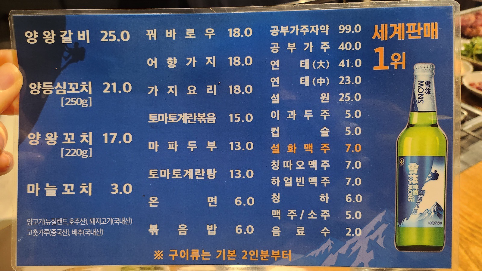 예전에는 양왕꼬치 말고도 일반 양꼬치가 있었고 13,000원에 10꼬치가 나왔었던 기억이 있는데 이제는 없어진 것 같아요.