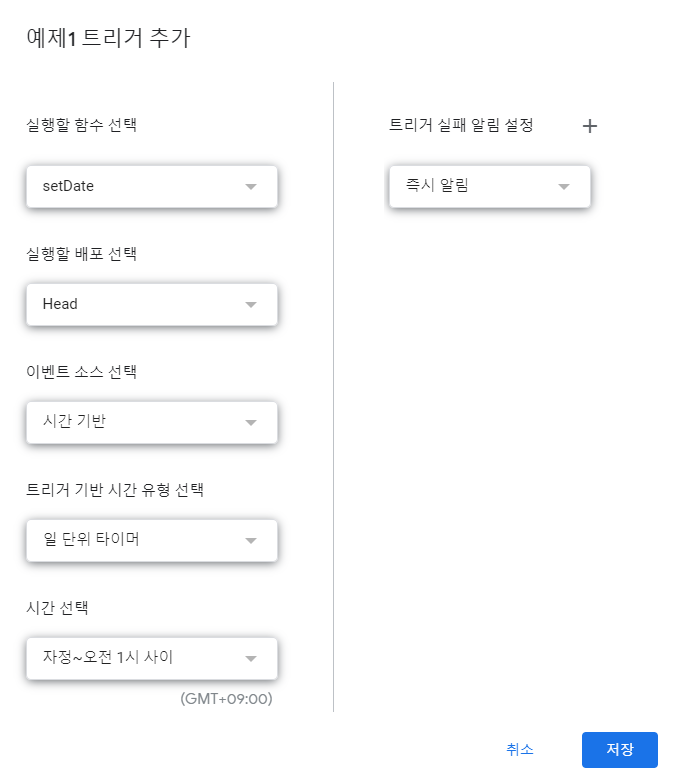 저장을 누르시면 앞으로 매일 자정~오전 1시사이에 setDate함수가 동작하게 됩니다.