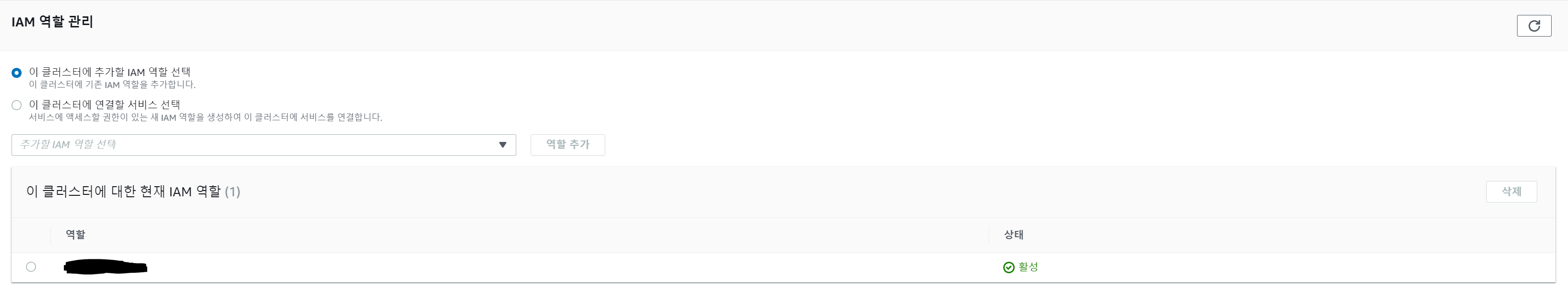RDS 클러스터의 '연결 & 보안' 탭에 IAM 역할 관리 추가.