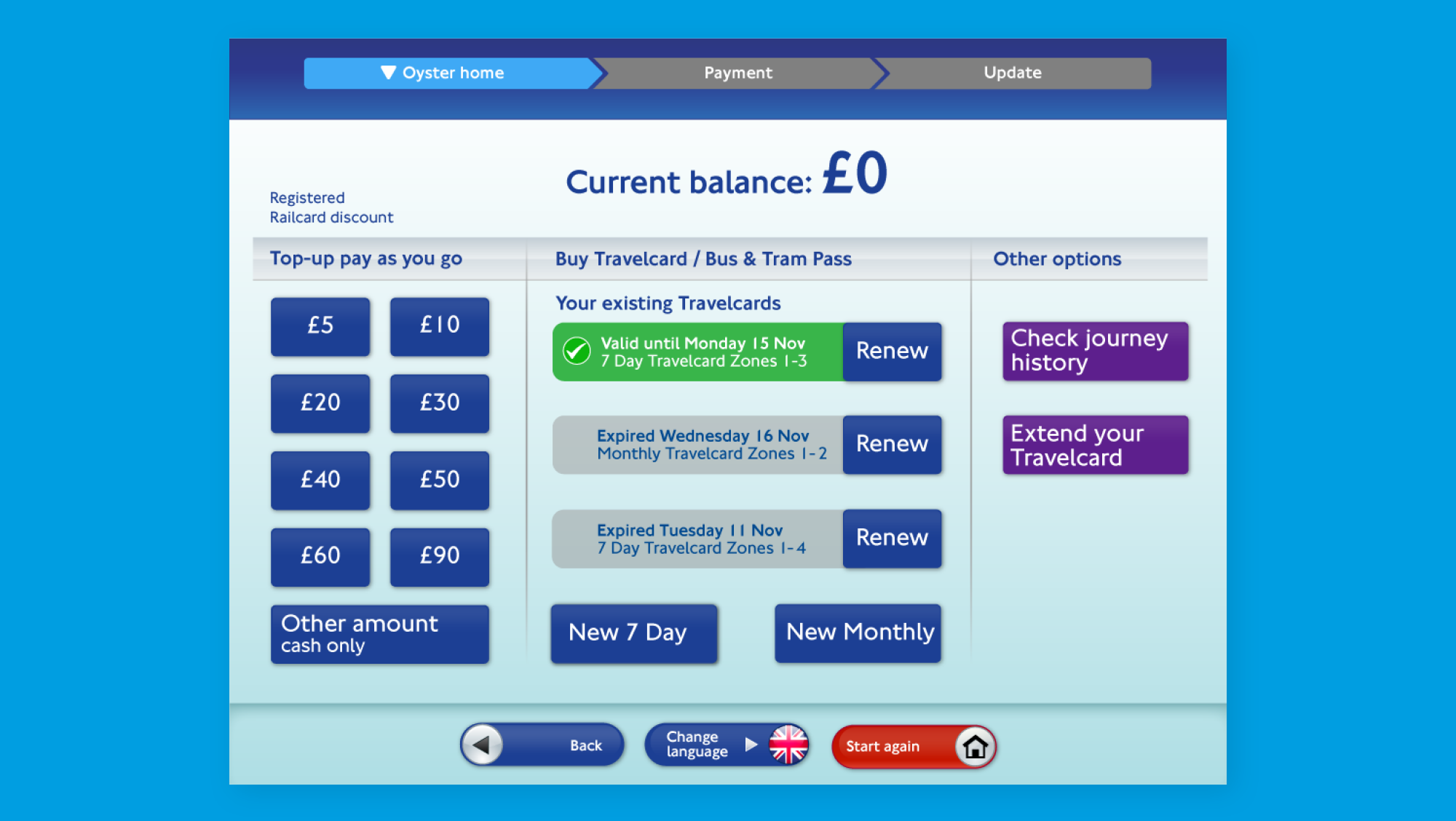 카드로 하시겠다 하시면 Card accepted로 가셔서 오이스터 카드를 발급받으시면 됩니다.