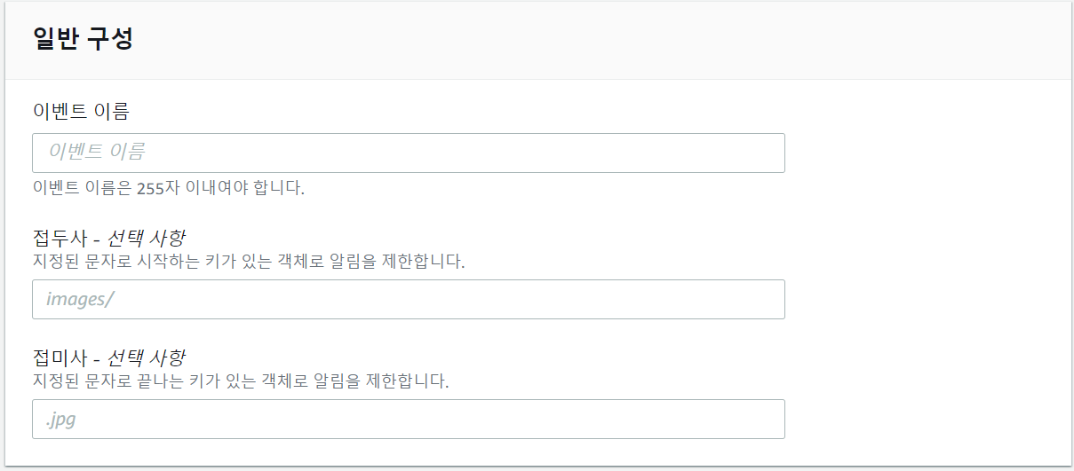 예를 들어 images/로 접두사를 설정한다면 버킷안에 images 폴더 안에 있는 객체에 대한 이벤트만 트리거 된다.