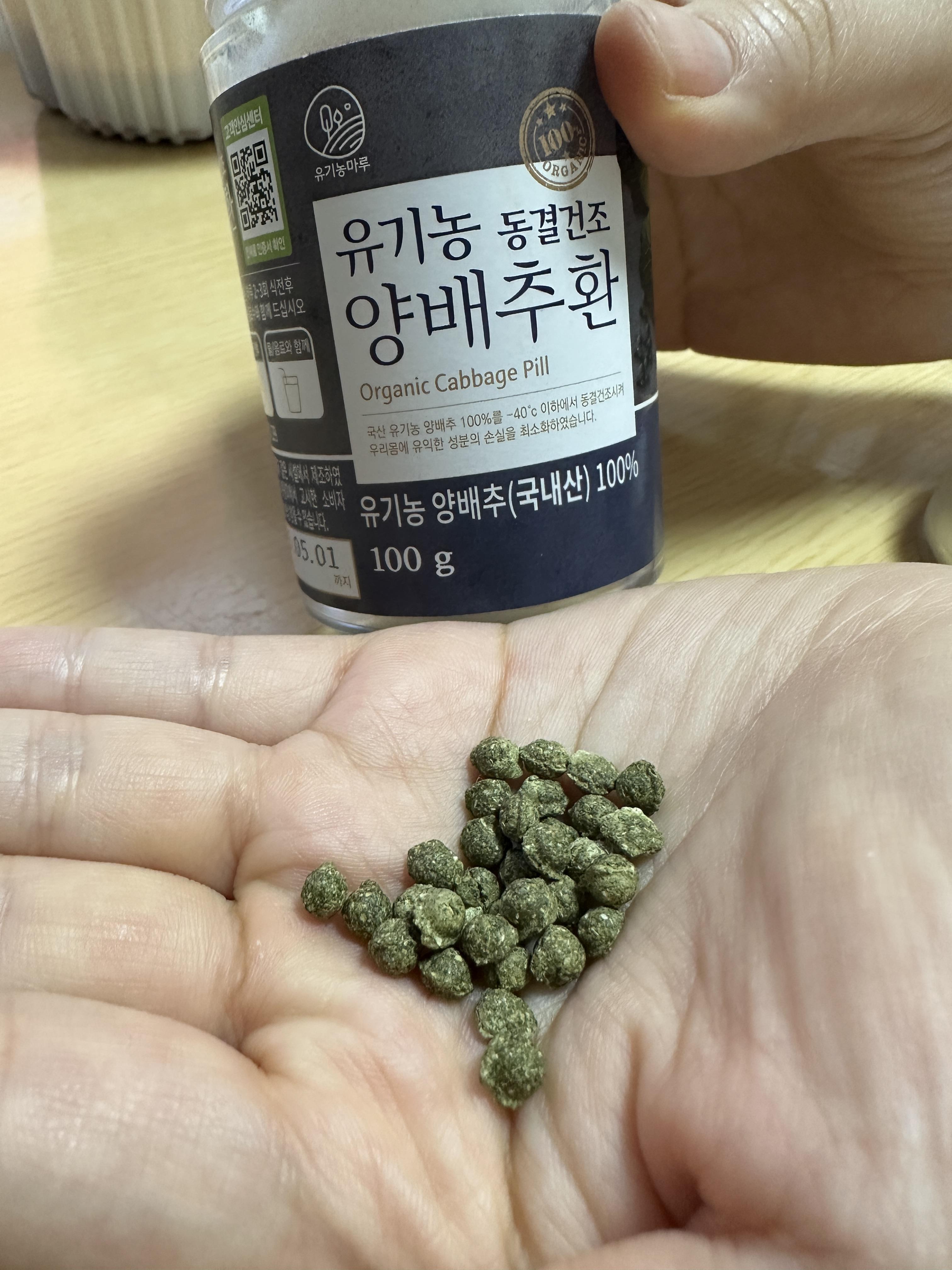 제가 먹고있는 것은 유기농 동결건조 양배추환인데요.